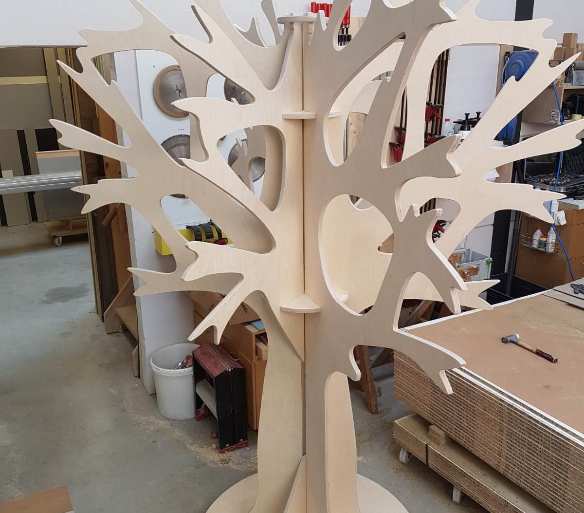 Grote multifunctionele boom ontworpen voor een ontmoetingsruimte woonzorgcentrum de Tuinen te Bleiswijk.